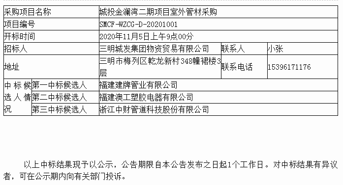 城投金瀾灣二期室外管材采購(gòu)中標(biāo)公告